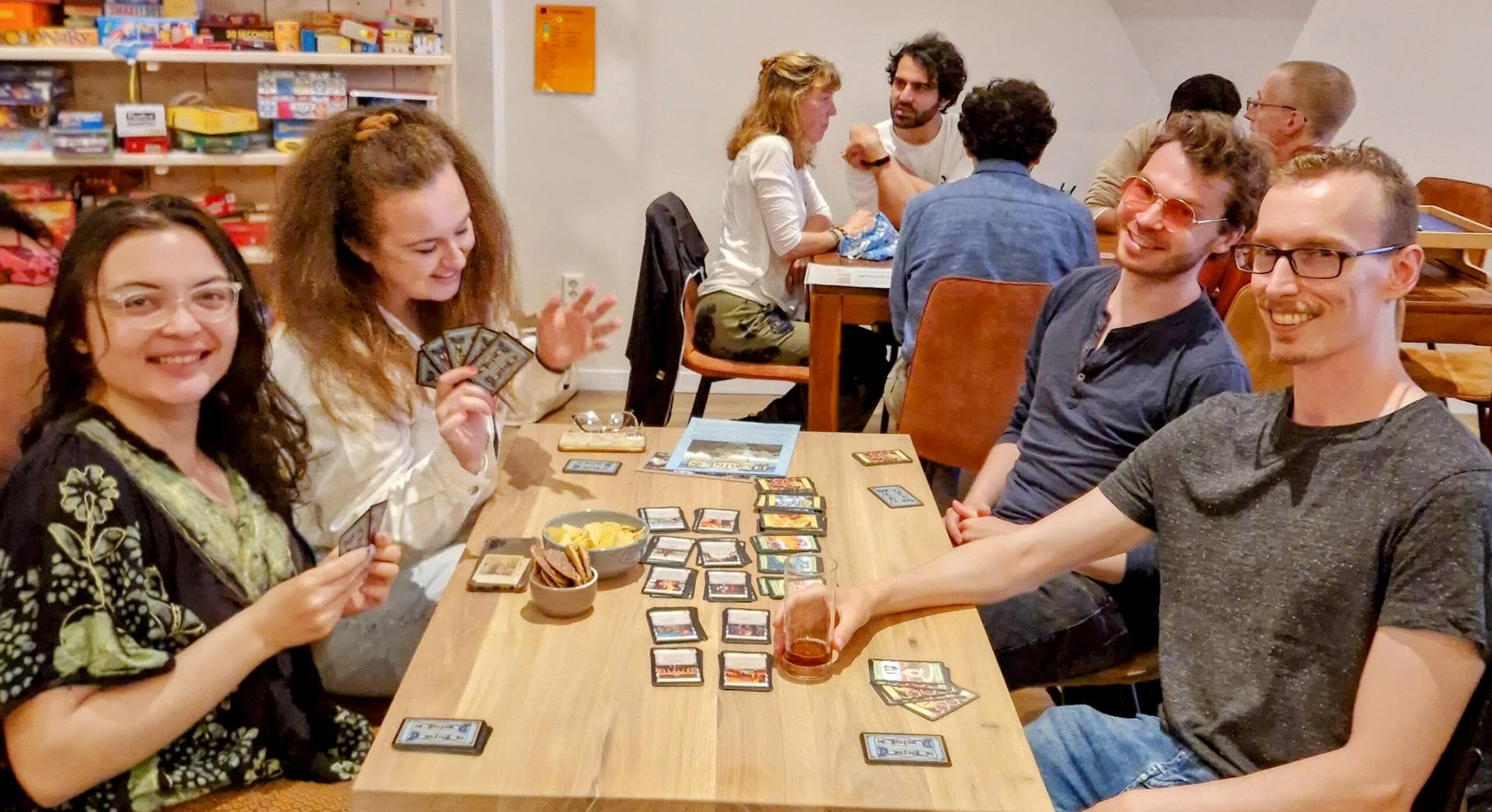 We have a wide collection of board games that are not only great fun but also specially selected to stimulate conversation! There is a game for every Dutch level, from ‘Memory’ for beginners to ‘Cards Against Humanity in Dutch’ for advanced speakers. For those who enjoy more strategic games, we also have ‘Catan,’ ‘Ticket to Ride,’ ‘Exploding Kittens,’ ‘Azul,’ and many more! There’s something for everyone.
